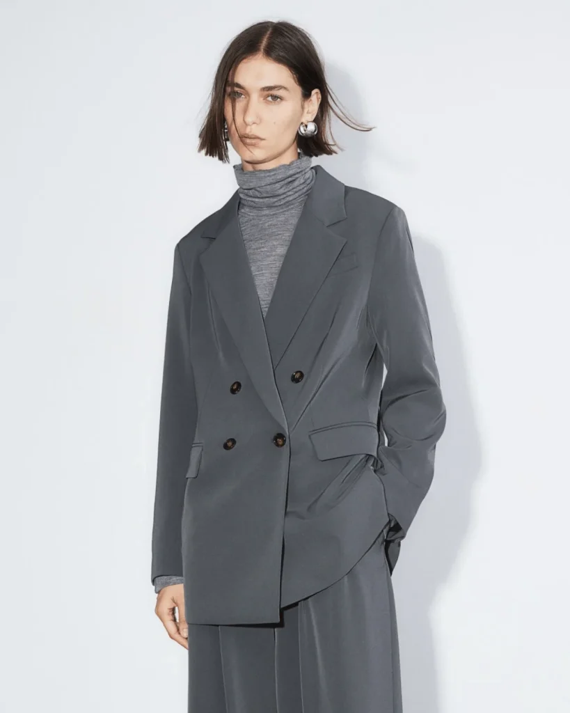 You can always rely on H&M to come through with some affordable gems. And this dark grey blazer is just one of many. If you also love the matching trousers click here.