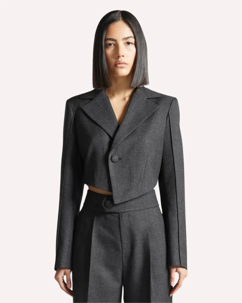 This grey asymmetric cropped blazer from Maniére De Voir is sharp!